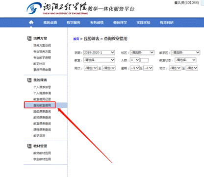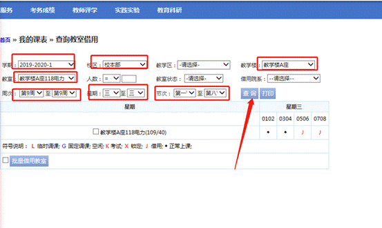 输入查询条件进行查询,注意教学区不要选择。
