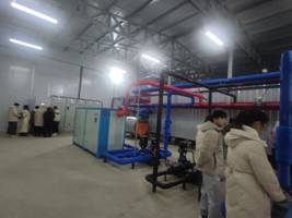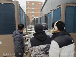 实训基地换热站分为站外和站内两部分组成:站外为9台超低温空气源热泵机组,单台额定制热量为155KW,站内为源侧一次泵系统、板换侧一次主泵系统、板换侧二次主泵系统及其补水定压系统、水箱补给水系统、一个容积为300立方米水箱、一台电磁加热器等。换热站自2023年11月运行至今,每月耗电量12万度,电费约6万元,较传统集中供热每月节省采暖费5万元,减少排放二氧化硫357千克和氮氧化物310.8千克,减少烟气排放42万立方米。