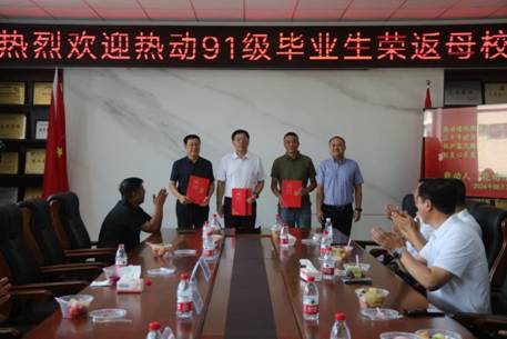 时光荏苒,岁月如梭,学校的一草一木、一砖一瓦都见证了校友们的成长。孙泰鹏和潘宏刚共同为热动911班、热动912班、热动913班颁发了“永久在校班级”和“毕业30年荣返母校纪念”荣誉证书。